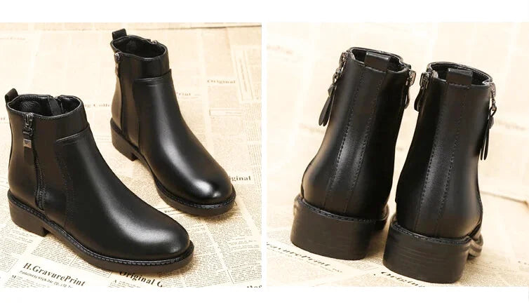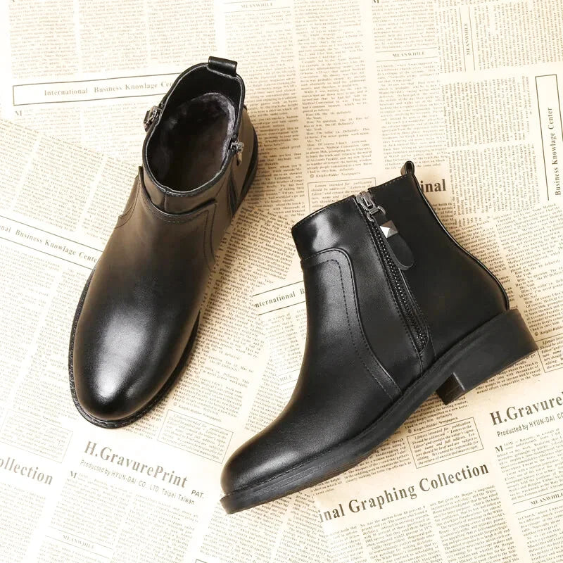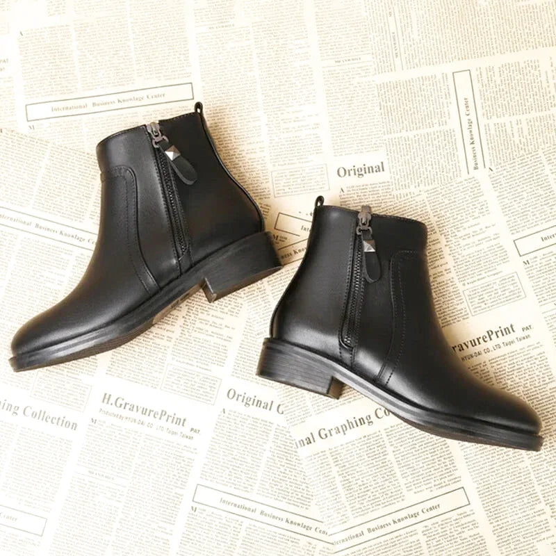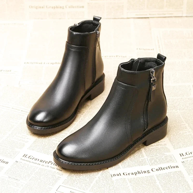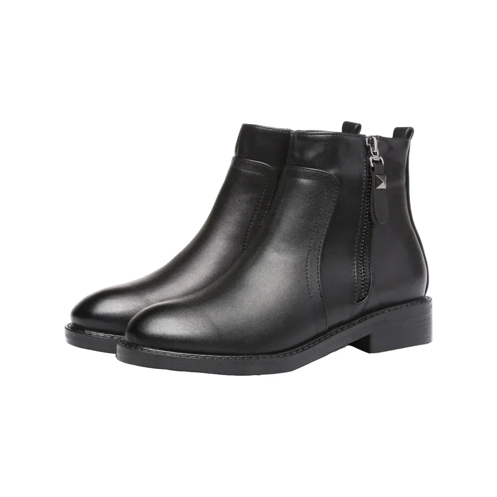 Bottes Plates Femme Noires – Fermeture Éclair – Bout Rond