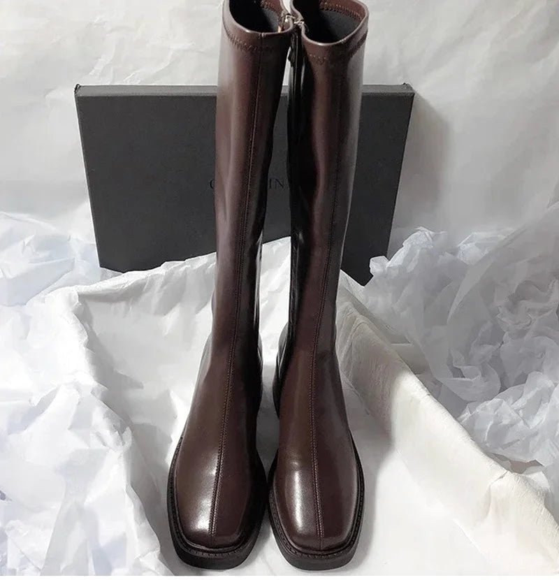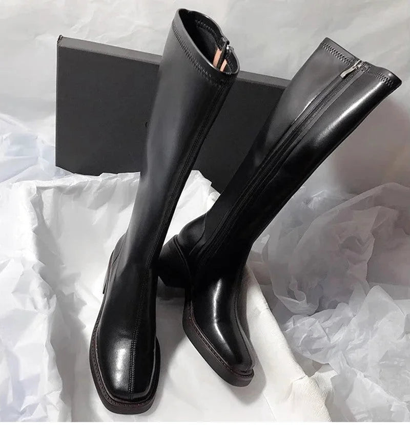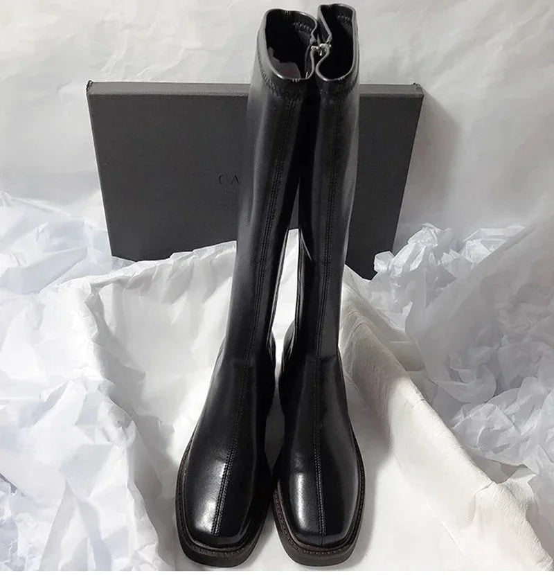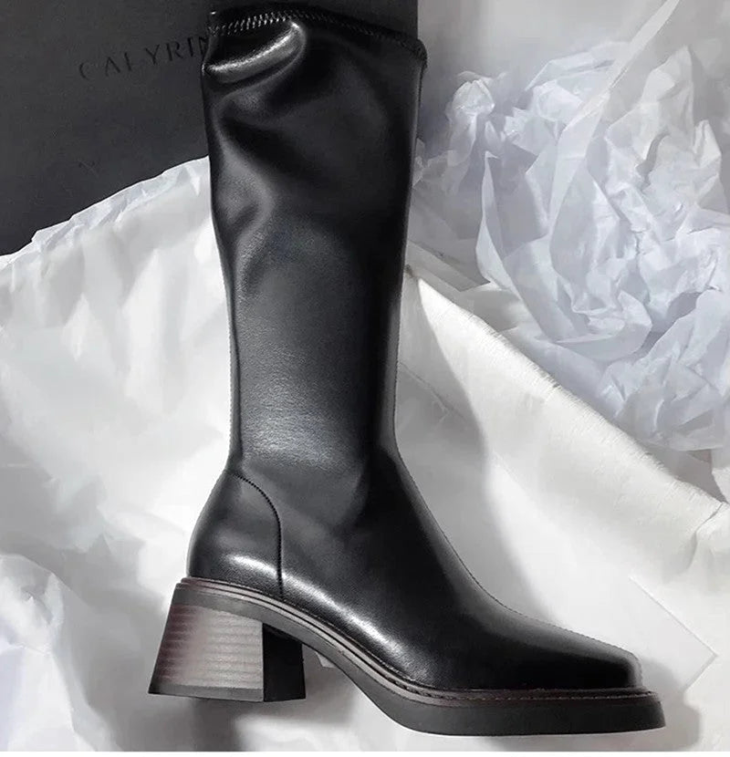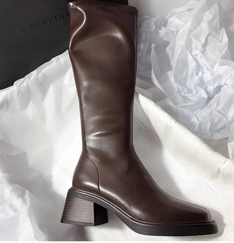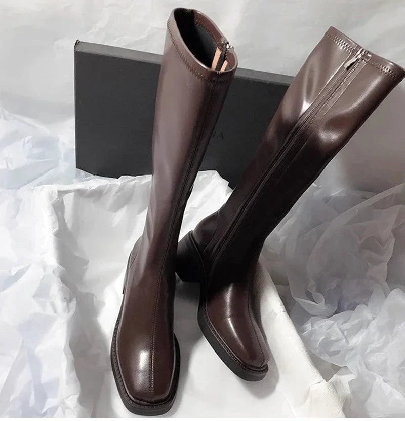 Botte femme cuissarde en cuir à tige haute – style chic contemporain